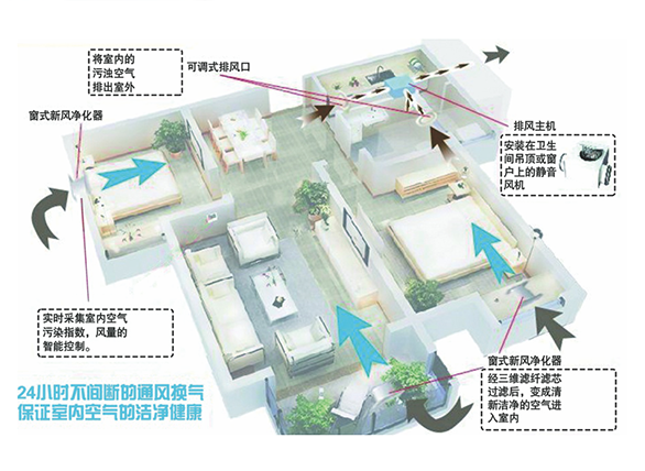 窗式新風系統凈化室外空氣入室內,形成正壓,排出室內污濁空氣,維持室內空氣清新。